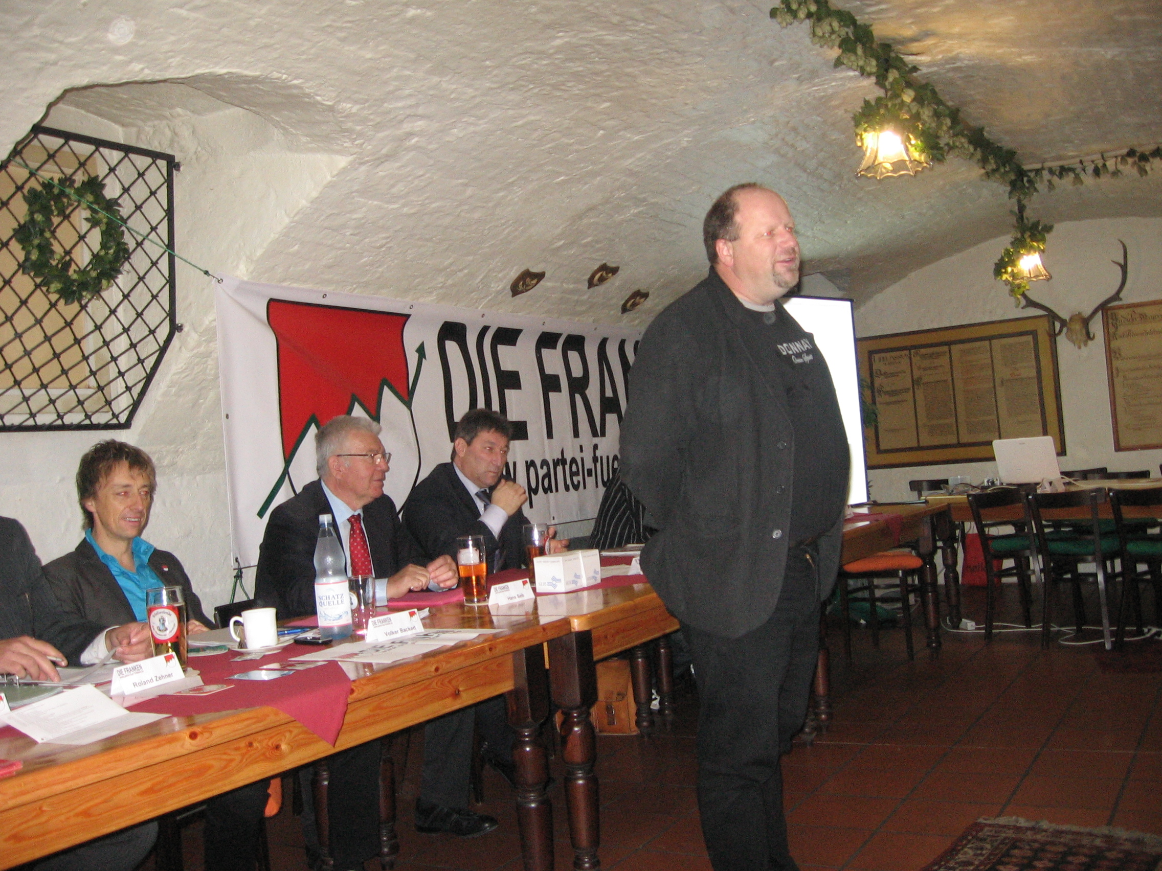Erfolgreiche Gründungsversammlung am 31.10. in Bamberg: Fast 70 Personen aus allen Landesteilen waren zusammengekommen, um im Klosterbräu in Bamberg die “Partei für Franken – DIE FRANKEN” aus der Taufe zu heben. Die weiteste Anreise hatte allerdings der Westfale Werner Szybalski hinter sich: der Münsteraner Regionalpolitiker war an diesem Morgen eigens nach Bamberg gefahren, um als Gast ein Grußwort der “Westfalenpartei“ zu überbringen. Zügig wurden dann Parteiprogramm und Satzung beschlossen, bevor schließlich der Parteivorstand gewählt wurde:
