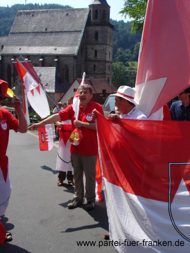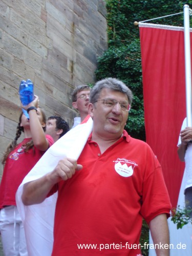 Das vom Amt für Kultur und Freizeit erstellte Ideenpapier “Modell zur kulturellen Belebung der Südstadt” bildete eine Grundlage für die “Südstadtgespräche” und für das erste Südstadtfest, das dann 1981 auf dem Kopernikusplatz eröffnet wurde, bunt und kreativ, wie heute noch. Das Motto kann grob mit Kultur und Information wiedergegeben werden, rein wirtschaftliche Stände sind auf diesem Fest nicht zu finden. Exotisches und Kulinarisches aus aller Welt, z.B. von den Partnerstädten Nürnbergs, waren ebenso geboten wie Informationen zu Menschenrechtsorganisationen und Parteien. Einen Namen konnte sich auf diesem Fest auch die PARTEI FÜR FRANKEN erarbeiten, die zum ersten Mal mit einem Informationsstand vorhanden war. Der Stand wurde hauptsächlich von Michael Dobler, Heike Fischer und Marco Dorsch betrieben. Basisarbeit zeigte auch der Bezirksvorsitzende Jürgen Schröder, der den Infostand organisierte und im Gegensatz zu der einen oder anderen etablierten Partei selbst an beiden Tagen am Stand zu finden war und hierbei den Bürgern Rede und Antwort stehen konnte. Die Informationsbroschüren, auch Flyer genannt, fanden viele Abnehmer. Aufschlussreiche Gespräche gab es auch mit vielen anderen Standbetreibern unterschiedlichster Nationen, die hierbei erfahren konnten, daß die PARTEI FÜR FRANKEN allen Kulturen und Nationen offen steht. Text: Jürgen Schröder